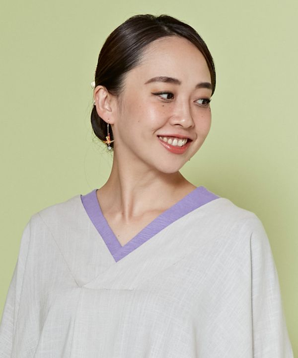 着物の下に着る襦袢(じゅばん)をイメージした中着。紫や紅梅色のような派手な色を禁止されていた、江戸時代の贅沢禁止令より生み出された、墨を含んだくすんだ和の色あわせ。癖のない色合いのトップスは、一枚で着るのにはもちろん、ワンピースに合わせても着られます。色から和を楽しむ、カジュアル和装におすすめの一枚です。