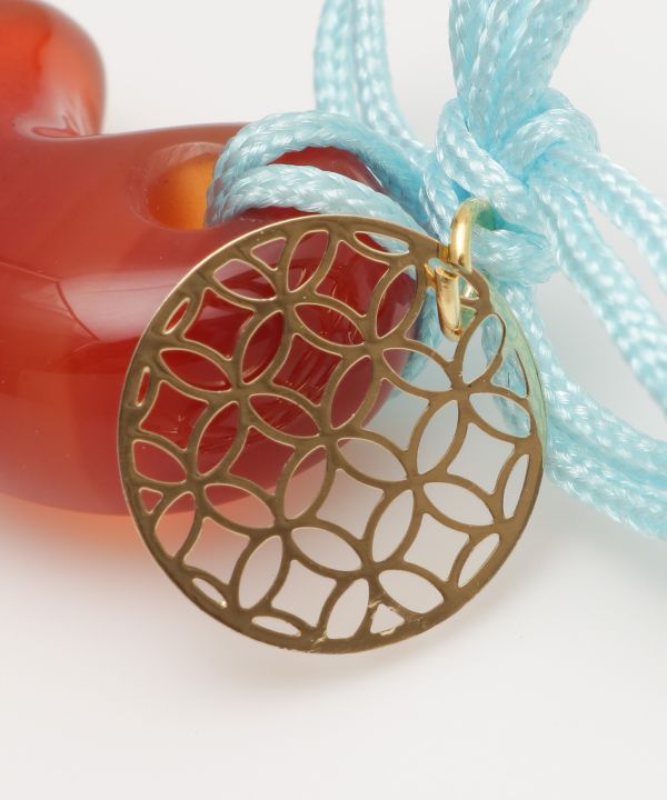 天然石の勾玉と透かし和モチーフを組み合わせたネックレス。二重叶結びをイメージしたモチーフはあなたの願いを叶えるお守りとしてどうぞ。