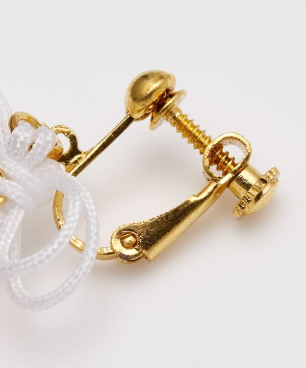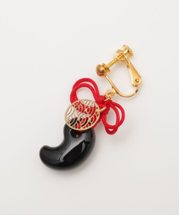 天然石の勾玉と透かし和モチーフを組み合わせたイヤリング。二重叶結びをイメージしたモチーフはあなたの願いを叶えるお守りとしてどうぞ。