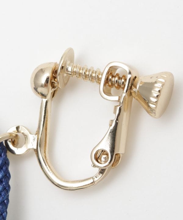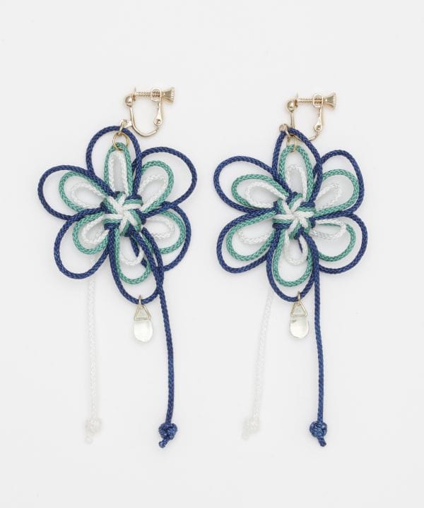 日本の伝統工芸品 「組紐」をイメージした菊結びモチーフのイヤリング。大ぶりで垂れ下がるビーズが女性らしさを引き立たせるデザイン。和装は勿論、普段のお洋服にも合せやすいです。