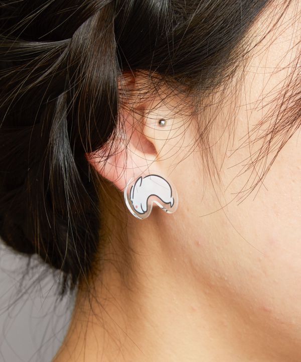 浮世絵に描かれた愛嬌のある動物をモチーフにしたピアス。モチーフはアクリル製で軽い着け心地。犬、猫、うさぎ、可愛い動物たちに癒されます。