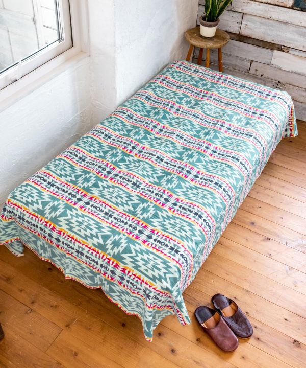 ネイティブアメリカンの聖地と呼ばれるセドナの大地と大空をイメージしたデザインのマルチクロス。6箇所のループ付きでタープとしても使えて、アウトドアシーンでも大活躍。目隠しのパーテーションや、日除けのタープなど仕様用途は幅広い。