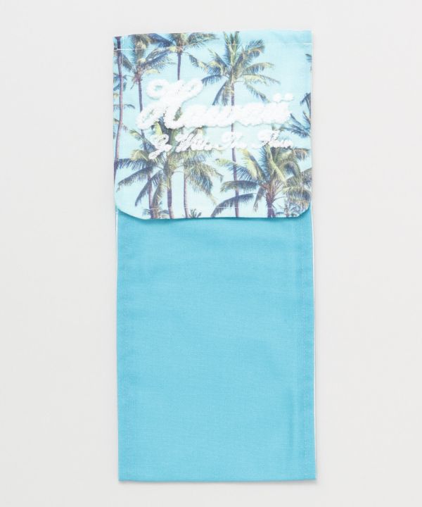 ワイキキビーチを連想させてくサガラ刺繍がポイントのトイレットペーパーホルダーカバー。HAWAIIでパームツリーは、「家族愛」「守護」の意味があります。ホヌは、「幸せを運んでくる」「身を守る」「金運」「長寿」「海の守り神」の意味あります。ゆったりとしたHAWAIIの癒