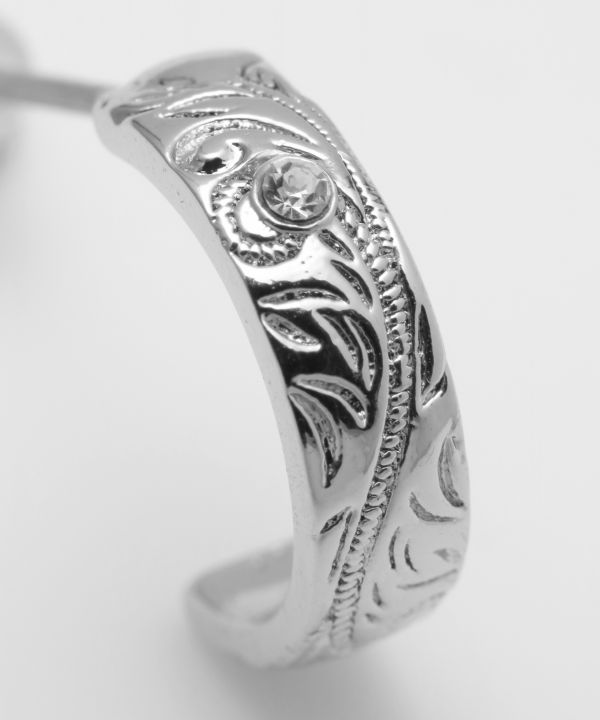 2種類のフープを組み合わせたセットピアス。それぞれにハワイアンジュエリー調の刻印を施しました。シンプルなデザインの中にもHAWAIIを感じるピアス。キラりと光るストーンがポイント。