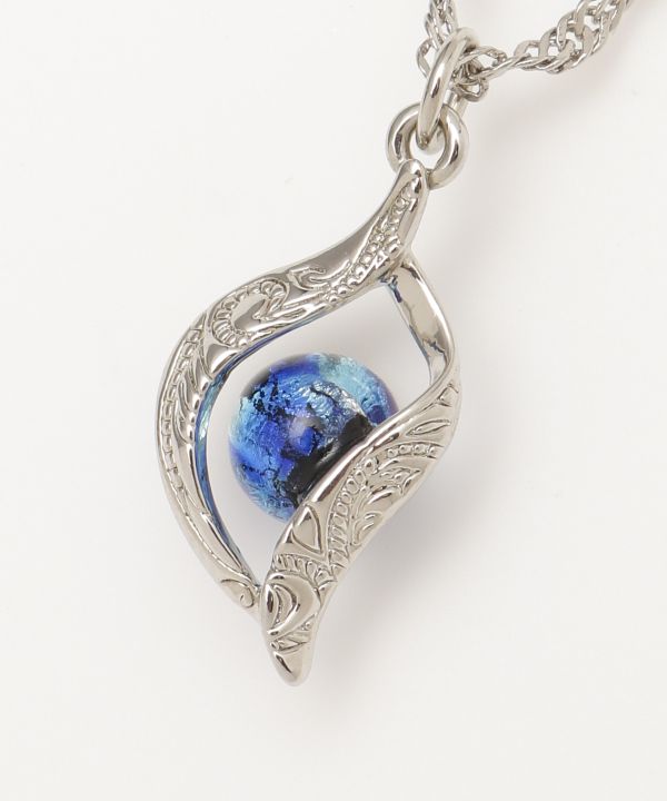 天国の海の名前を持つラニカイビーチの美しい海をそのまま閉じ込めた様なネックレス。HAWAIIの自然にあふれる木々のリーフにハワイアンジュエリー調の刻印を施し、美しく神秘的なブルーと合わせました。あなたにHAWAIIの風を運びます。