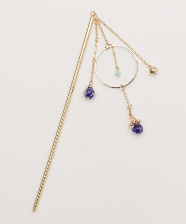 線香花火をイメージした繊細なデザインのかんざし。儚げに揺れる飾りが耳元を彩ります。