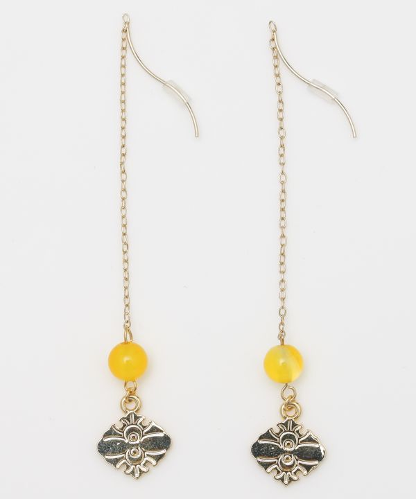 煌びやかな吉祥モチーフと天然石をあしらったピアス。天然石の落ち着いた色合いと静かに揺れるモチーフが大人っぽさを演出します。