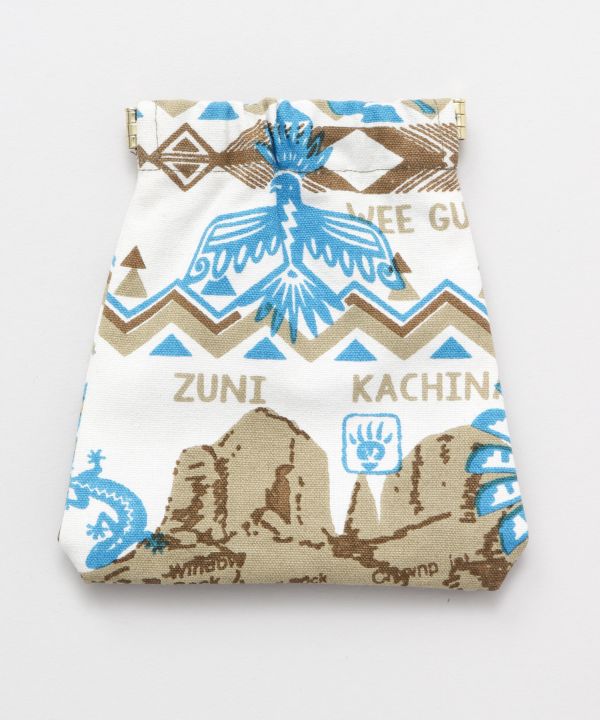 世界各国を旅したような気分に。片手でパカッと簡単にあけられるバネ口のポーチ。モロッコのタイルやハムサの醒めるような青、メキシコの愉快な死者の祭り、アフリカの大地と力強い動物と深い緑の葉、インドの商売の神様ガネーシャと力強く働く人々、ネイティブアメリカンの聖地セドナ、澄んだ空に手が届きそうな国ネパール。世界各国に想いを馳せて。※生地の裁断により、柄がひとつひとつ異なります。