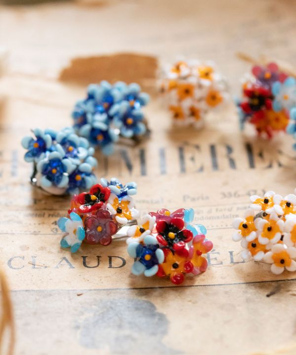 チェコの職人がひとつひとつ手作りした、繊細で美しいボヘミアガラスのイヤリング。お花のブーケを模ったレトロでかわいらしいデザインです。見ているだけでうっとりしてしまう伝統のガラスアクセサリー。ぜひ自分だけのお気に入りを見つけてください。