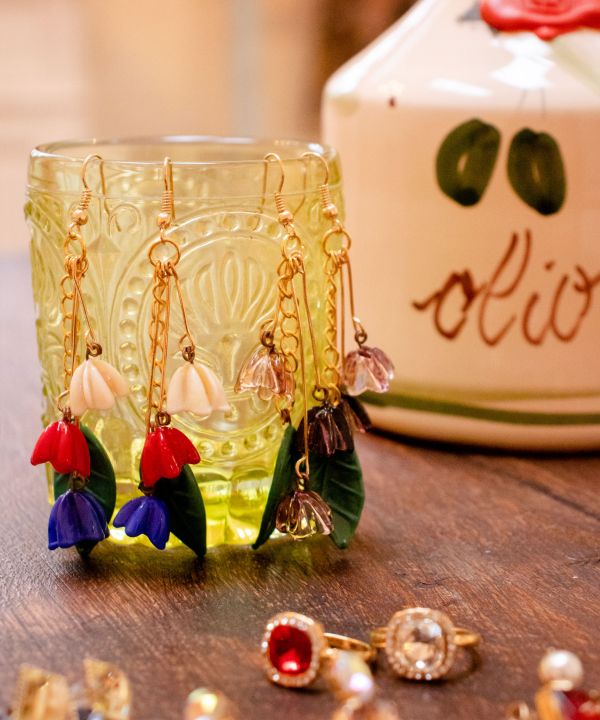 イタリア・水の都ヴェネチアで作られた、繊細なガラス細工のピアス。複数のパーツを組み合わせて動きのあるデザインに仕上げました。職人の手でひとつひとつ丁寧に作られたアクセサリーはあたたかみがあり、身につけるだけで幸せな気持ちに包まれます。