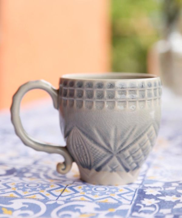 【Made in ポルトガル】カットグラス、切子ガラスのような個性的なデザインが印象的なシリーズ。マザーオブパールをイメージした色味の「ナカル」と、透明感のある「グレー」の2色展開。「ナカル」は釉薬が熱によって反応してできる金の細い糸のような模様が入り、何とも言えない幻想的な色味が魅力です。陶器のような温かみと磁器のような丈夫さを兼ね備えたストーンウエア製。電子レンジ、食器洗浄機も使用可能。美しいデザインと使いやすさで、毎日の食卓やティータイムをより豊かに楽しくしてくれます。