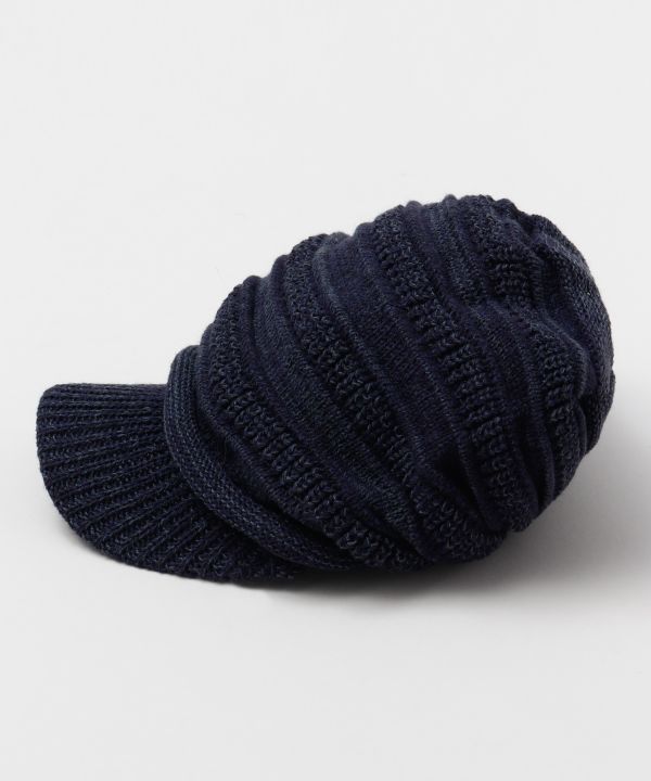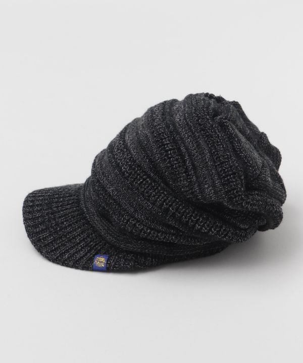 ゆるっとした変形ニットキャップ。ラフに着こなしが決まり、ボリュームのあるツバ付き。段になる編地が簡単にシルエットを決めてくれる。あなたの個性とこだわりを演出してくれる大人気アイテム。
