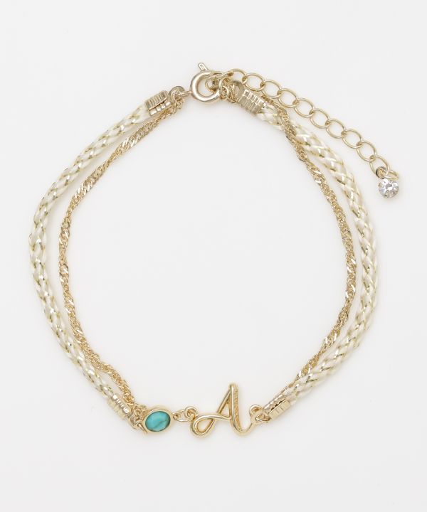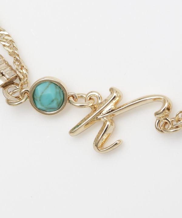 HAWAIIの波(ナル)のような曲線でデザインされた繊細なイニシャルのブレスレット。HAWAIIの海をターコイズで表現しました。身に着けることでいつでもHAWAIIを感じて。