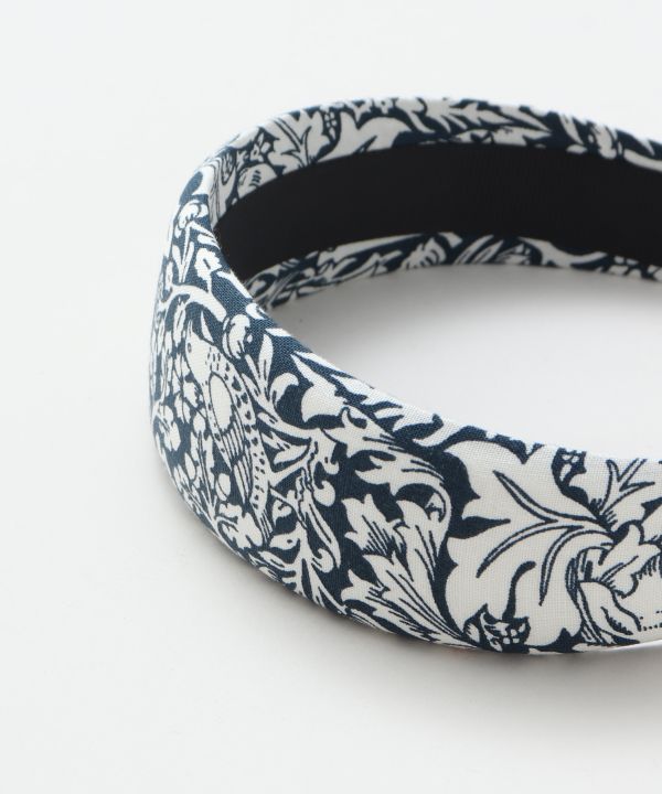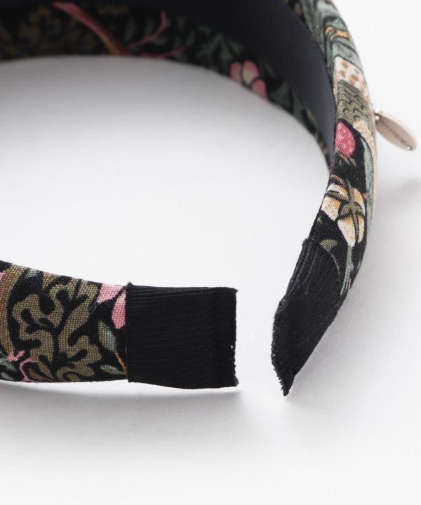 ヴィンテージ感溢れるボタニカル柄のヘアカチューシャ。厚みのあるデザインでシンプルながら存在感があります。モダンで美しいヘアスタイルに。