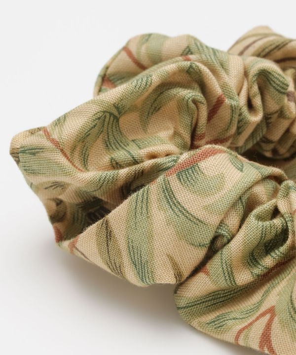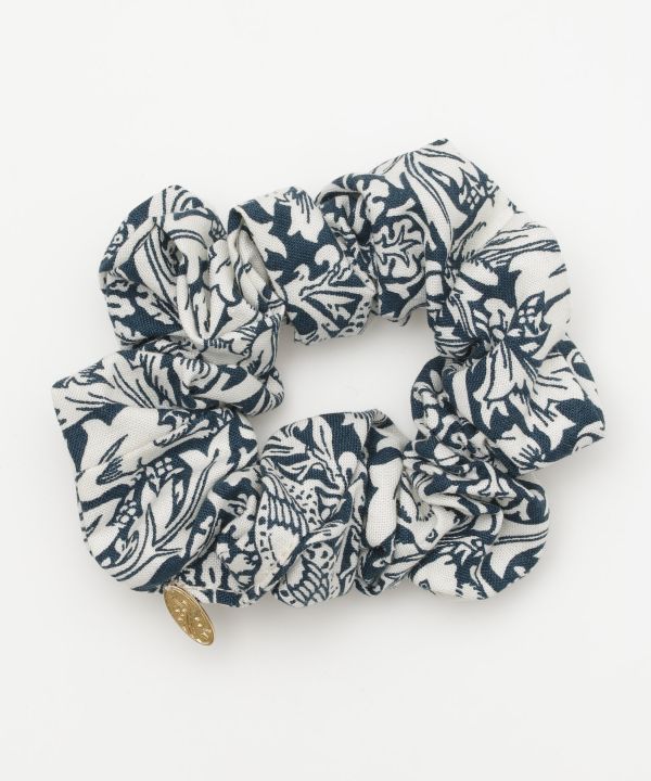ヴィンテージ感溢れるボタニカル柄のシュシュ。腕に着けてもかわいいサイズ感。モダンで美しいヘアスタイルに。