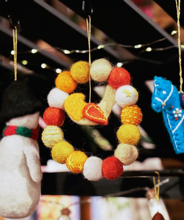 ほっこりと温かみのある羊毛フェルトで作られたクリスマスリース型オーナメントです。ツリーに飾るのはもちろん、お部屋のドアに掛けたり、ちょっとした空間をクリスマスムードに彩ります。※一点一点手作りのため、サイズやモチーフに個体差がございます