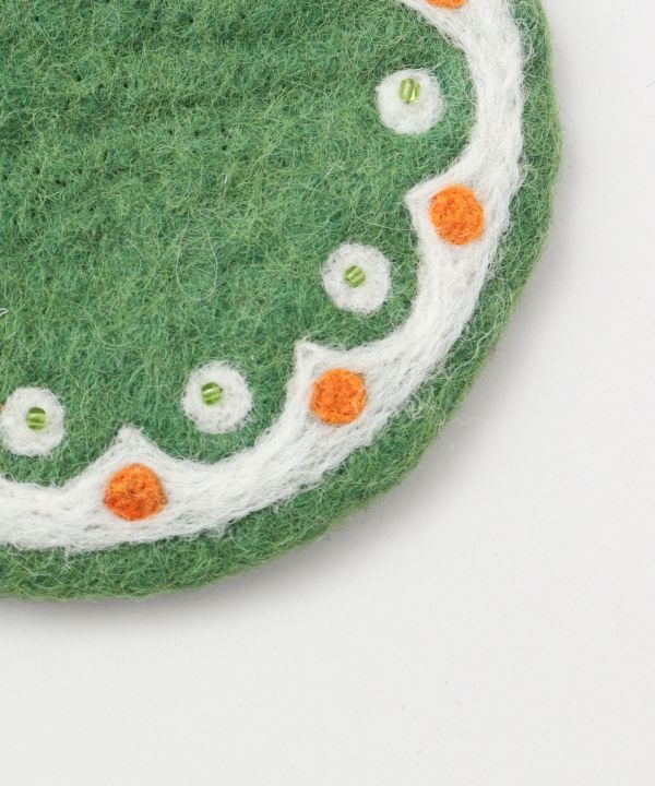 温かみのあるフェルトコースター。ポーランドの食器・ポーリッシュポタリーをイメージしました。一点一点手作りで味のあるアイテムです。レトロでどこか懐かしい、ホッとするような食卓を演出してくれます。※一点一点手作りのため、サイズや柄の出方に個体差がございます