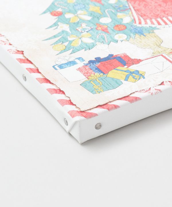 クリスマスモチーフのアートボード。手書き風のレタッチで、ヴィンテージポスターのような仕上がり。キャンバスの質感が素朴であたたかみがあります。一枚飾るだけでクリスマスムードが一気に高まります。