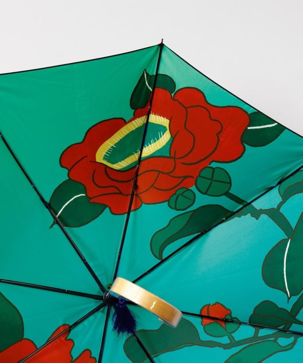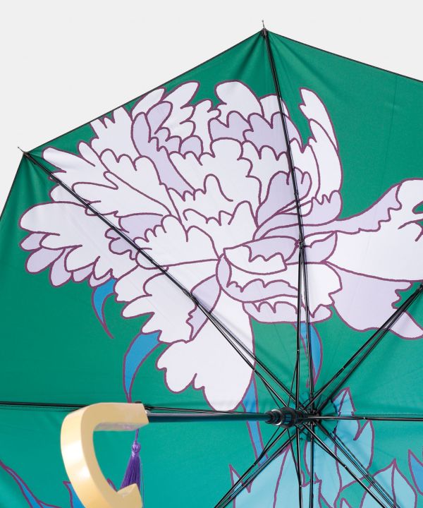 伊藤若冲が描いた天井画「花卉図(かきず)」をリデザインした日本を感じさせる日傘。外側にブラックコーティングのUVカット加工付き。内側にデザインがあるので、差したとき内側に咲く鮮やかな春の花を楽しめます。遮光率90%以上。晴雨兼用なので突然の雨でもお使い頂けます。おしゃれなタッセル付き。