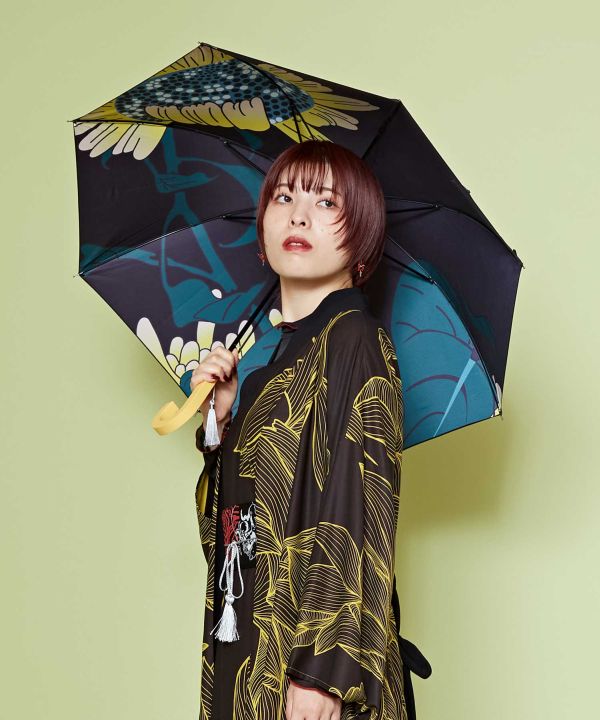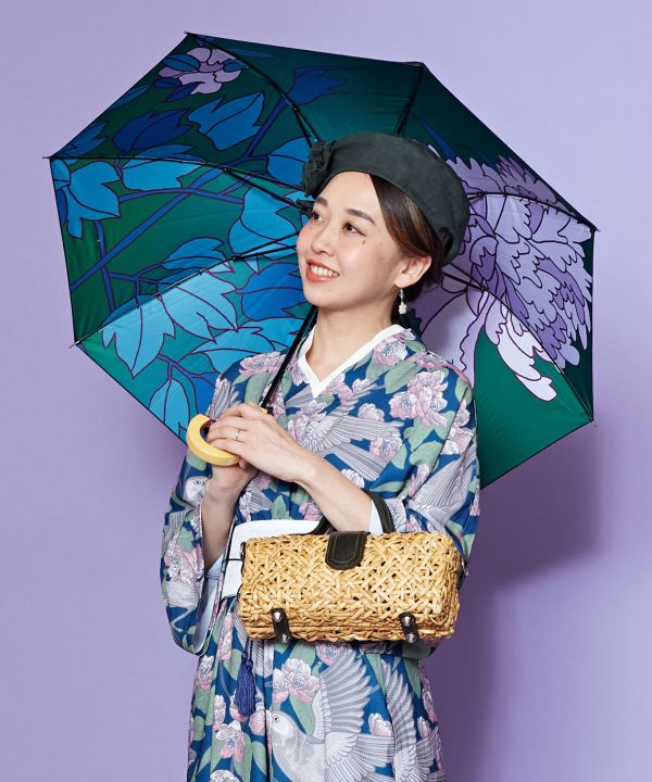 伊藤若冲が描いた天井画「花卉図(かきず)」をリデザインした日本を感じさせる日傘。外側にブラックコーティングのUVカット加工付き。内側にデザインがあるので、差したとき内側に咲く鮮やかな春の花を楽しめます。遮光率90%以上。晴雨兼用なので突然の雨でもお使い頂けます。おしゃれなタッセル付き。