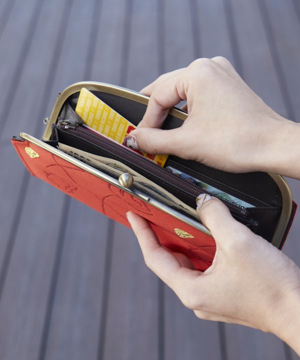 春の野原に咲く可愛らしい花々をモチーフにしたがま口長財布。お札を折らずに入れられる収納力たっぷりなお財布。カードポケットも6箇所 。ジャガード織りなので高級感があり、金糸を織り込んだ上品な仕上がりで柄の主張が少ないのでどんな服でも合わせやすいです。春に向けて気持ちを切り替える一品。春(張る)財布にもおすすめ。