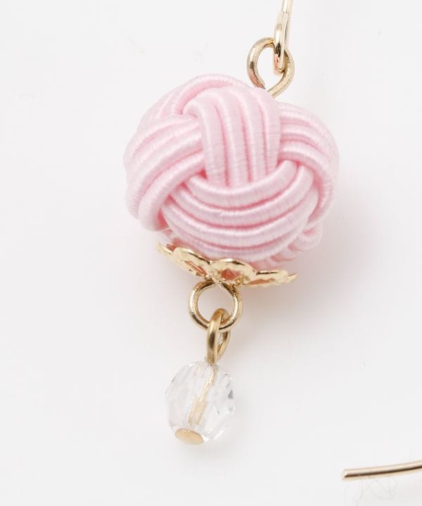 四季を感じ、色(しき)を纏う。和の花をイメージしたやわらかい色彩で編まれた水引。春を待ち焦がれる心は、平安の昔から詠み継がれてきました。冷たい風に吹かれながらも、小さな春を身に纏うあわじ玉ピアス。ガラスビーズが揺れて、春の装いにぴったりです