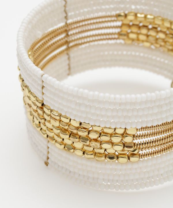 風の吹き抜ける爽やかなイメージのイージーバングル。大ぶりなバングルは手元を華やかに彩る。インパクトがありながらもこだわりのカラーリングがコーディネートに馴染む。一目見れば心を奪われる。