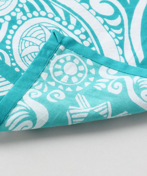 樹木がうねり極楽鳥が踊る、力強いデザインで長年愛されるトライバル柄のバンダナ。トライバルは赤道近くの太平洋諸島の部族の間で生まれた伝統のデザイン。ハンカチとしてはもちろん、ヘアアレンジや棚上を飾る装飾としても。小物にもあなたらしい大胆なこだわりを発揮しよう。