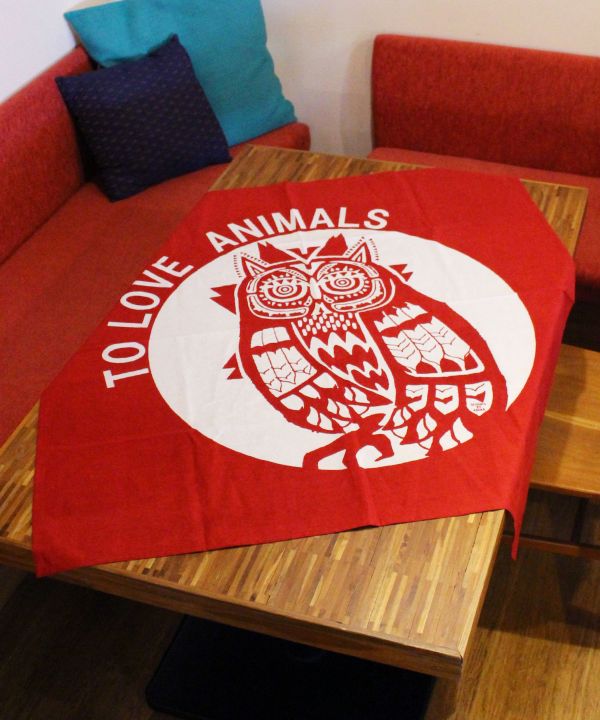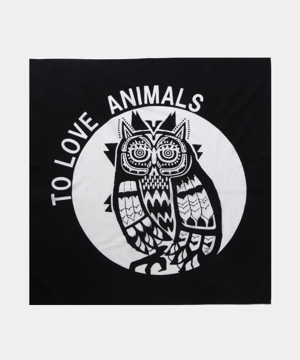 -TO LOVE THE ANIMALS-動物たちの生活を考えることが将来の地球、未来の子供達を考えることに繋がる。そんな思いが込められたマルチクロス。大胆に描かれたフクロウが印象的。コットン100%で柔らかな肌触り。テーブルクロスにしても良し、隠し布やキャンプの装飾にも大活躍。日常を自分だけの特別な空間に演出。