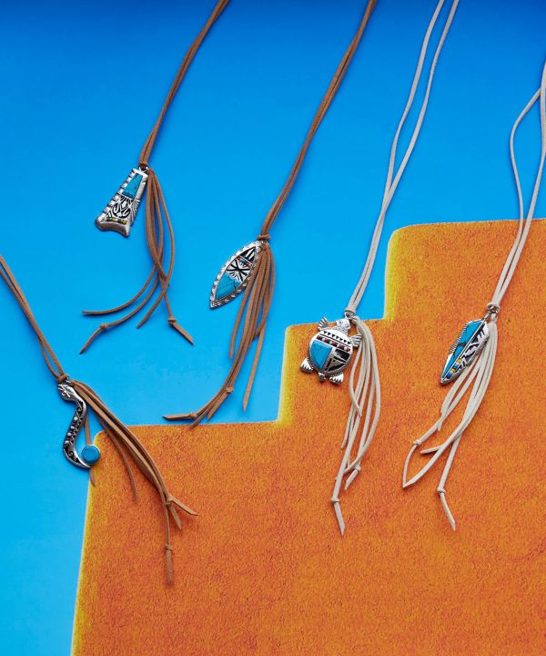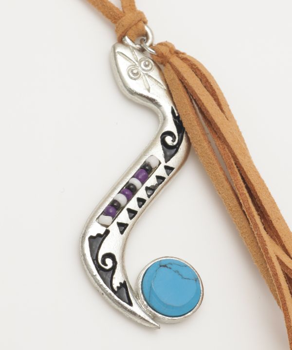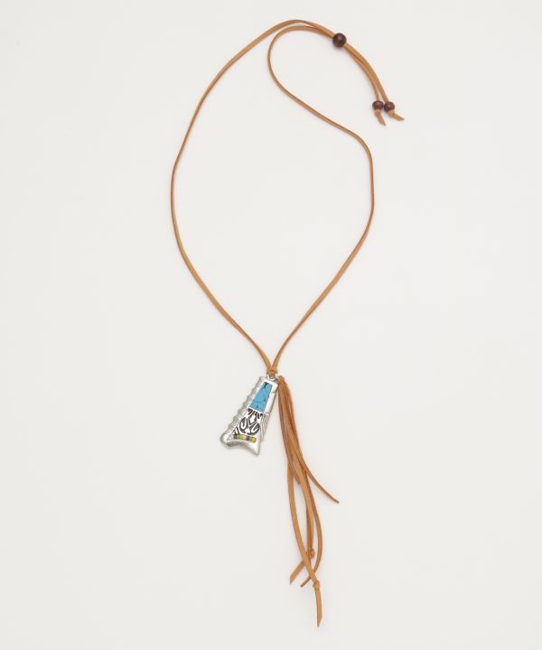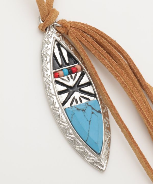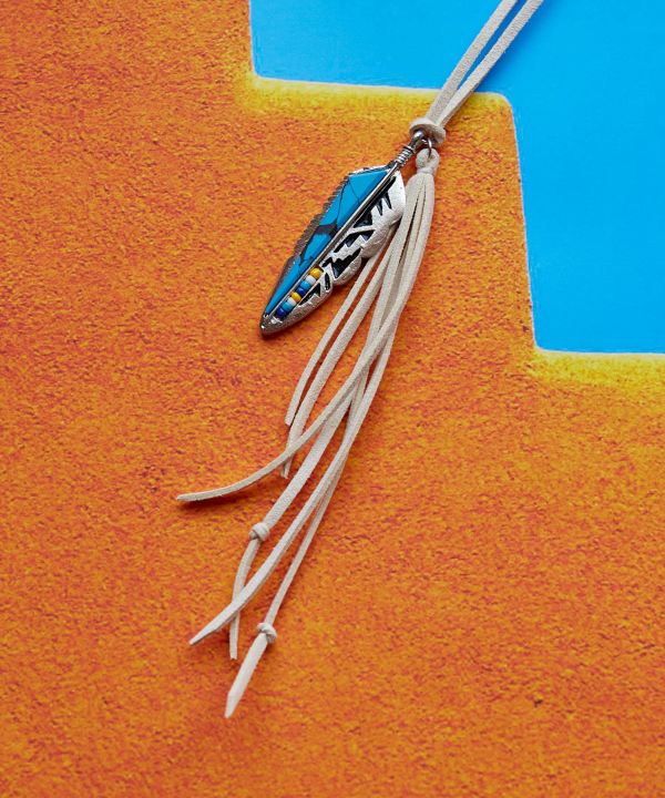 ネイティブアメリカンからインスパイアされたターコイズを組み合わせたインレイネックレス。 大自然とともに生き、自らを太陽の子と表した彼らは、自然との共存を体現している。 その精神を身につけ感じてもらいたい。 地球の壮大なパワーをあなたに。