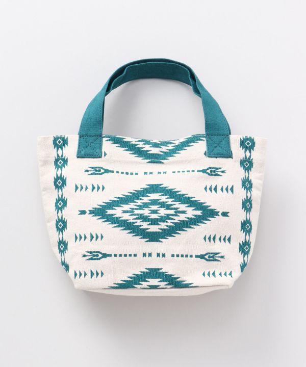 個性とこだわりをあなたに。チャイハネオリジナルのNOMADYシリーズ。シンプルなキャンバス地にビビッドカラーのネイティブ柄が映えるミニトートバッグ。サブバッグとして日常使いはもちろん、細かなものをまとめておけばキャンプなどのアウトドアシーンでも活躍する。内側にポケット有。日常に他にはない個性を。