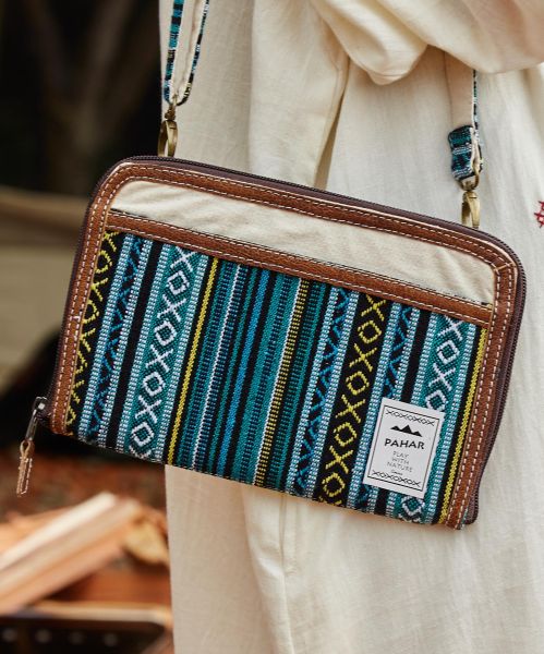 旅する気持ちを日常に。ネパール伝統の織り生地が魅力の万能マルチケース。ポイントで使われるビレッジレザーが印象を引き締める。大切なものをまとめて整理整頓し、肌身離さず携帯できる。長さ調節や取り外し可能なショルダーストラップ付き。ファスナーポケットやカードケースなど機能が充実していて、これ1つあれば心強い相棒になること間違いなし。使うほどに馴染む織りの素材感を楽しんでほしい。