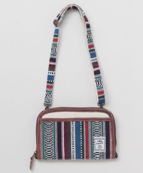 旅する気持ちを日常に。ネパール伝統の織り生地が魅力の万能マルチケース。ポイントで使われるビレッジレザーが印象を引き締める。大切なものをまとめて整理整頓し、肌身離さず携帯できる。長さ調節や取り外し可能なショルダーストラップ付き。ファスナーポケットやカードケースなど機能が充実していて、これ1つあれば心強い相棒になること間違いなし。使うほどに馴染む織りの素材感を楽しんでほしい。