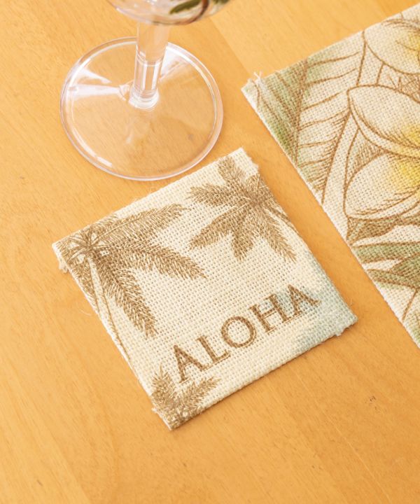 ジュート素材にHAWAIIの代表的なモチーフを描いたナチュラルな雰囲気のコースター。