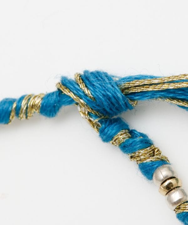 単色にメタルパーツがきらりと光るミサンガ。シンプルながらさりげない主張をしてくれる。重ね付けもおすすめ。