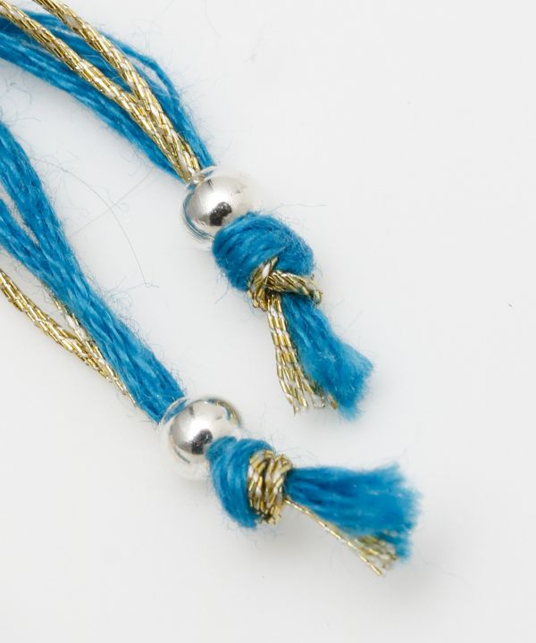 単色にメタルパーツがきらりと光るミサンガ。シンプルながらさりげない主張をしてくれる。重ね付けもおすすめ。