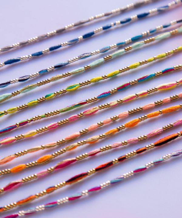 豊富なカラーバリエーションが魅力のミサンガ。1本でも様になる多色使いで、さりげなく個性を演出。