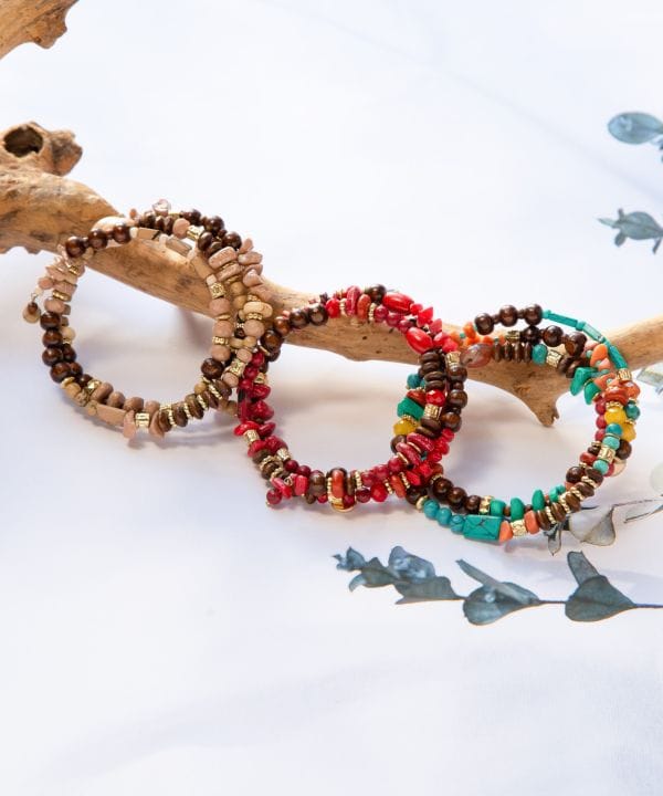 他では出会えない妖艶な雰囲気。形状記憶のワイヤーで簡単に装着できるビーズアンクレット。鮮やかにきらめくビーズが足元を彩ります。