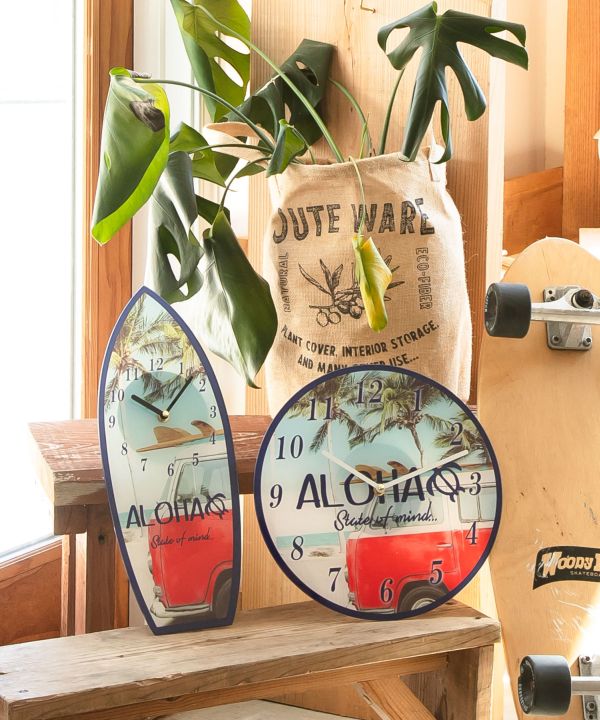 ホヌ(海亀)・ダイヤモンドヘッド、パームツリーにプルメリア。HAWAIIの美しい風景を落とし込んだガラスの時計。お部屋に飾るだけでまるでそこは、HAWAIIの雰囲気に。