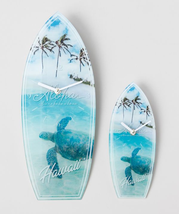 ホヌ(海亀)・ダイヤモンドヘッド、パームツリーにプルメリア。HAWAIIの美しい風景を落とし込んだガラスの時計。お部屋に飾るだけでまるでそこは、HAWAIIの雰囲気に。