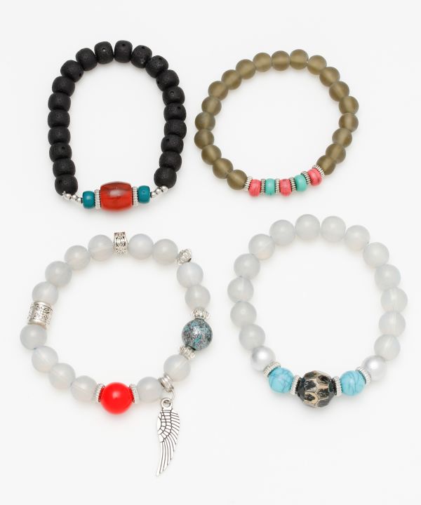 異素材を組み合わせたセットブレスレット。これだけで存在感大。ユニセックスで着用していただけます。