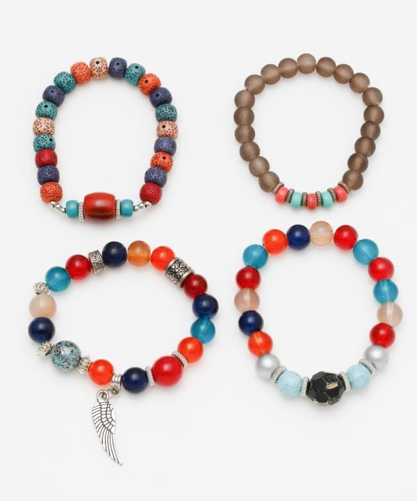 異素材を組み合わせたセットブレスレット。これだけで存在感大。ユニセックスで着用していただけます。