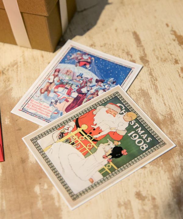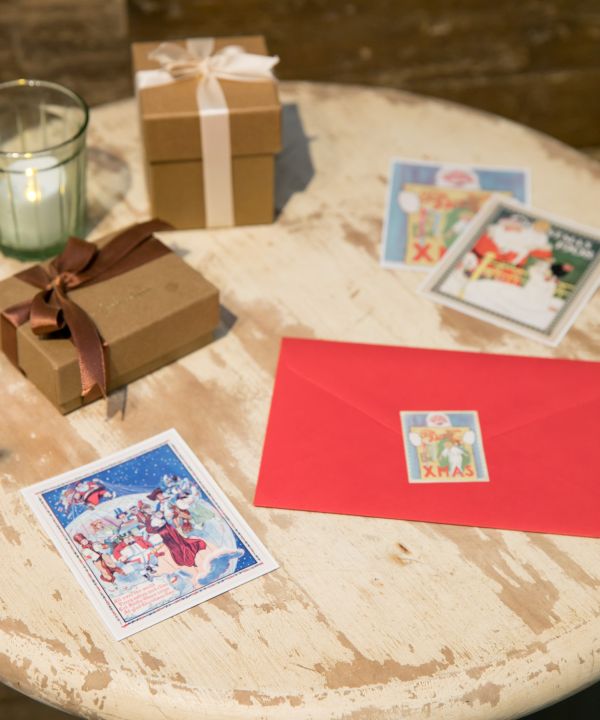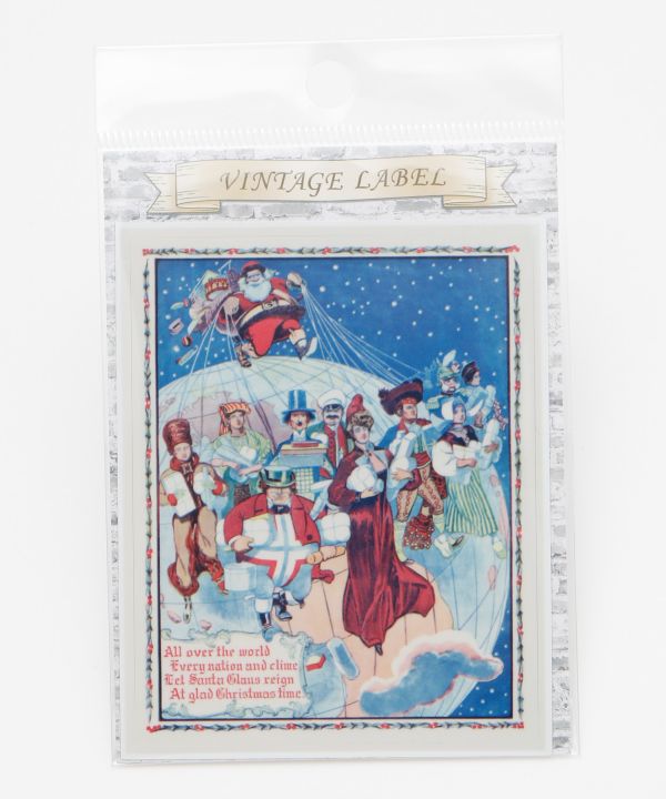 サンタクロースが描かれたヴィンテージ風のステッカー。レトロポスターのイラストを使用。耐水性のあるラミネート加工がされています。お手持ちのスマホやPC、ノートなどに貼って楽しんでみてはいかがでしょうか?