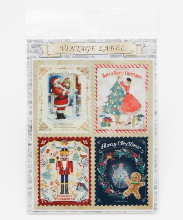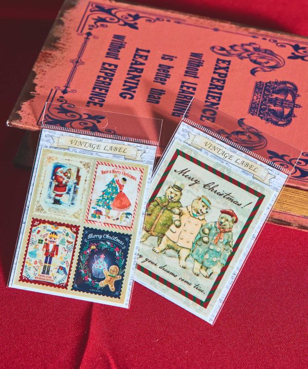 サンタクロースが描かれた切手風のステッカー。4種類のデザインがセットになっています。レトロポスターのイラストを使用し、耐水性があるラミネート加工がされています。お手持ちのスマホやPC、ノートなどに貼ってあなただけのオリジナルデザインに。