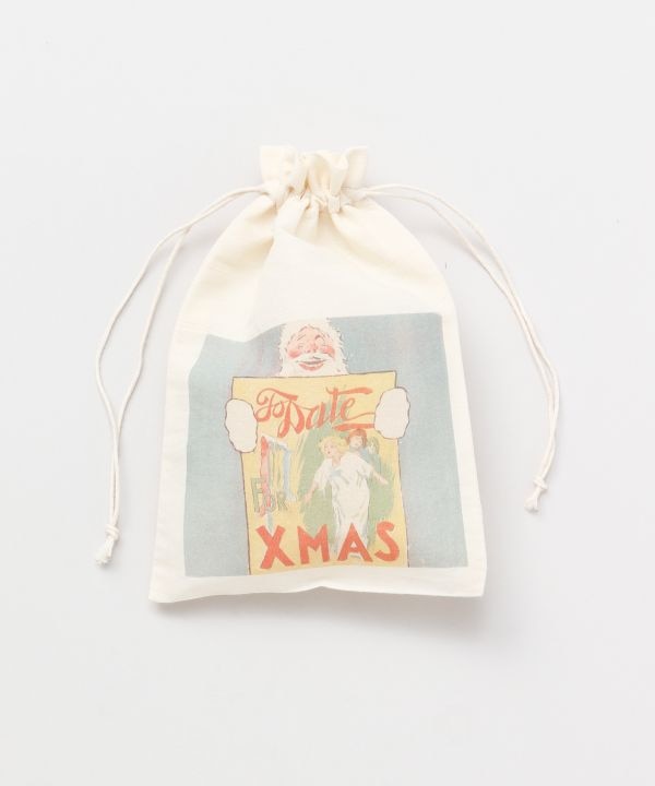コットンの素朴な風合いが可愛い巾着袋。サンタクロースが描かれたレトロポスターのイラストを使用。ポーチなどの小物やオーナメント等の雑貨など、小さめのギフトラッピング用にぴったりです。