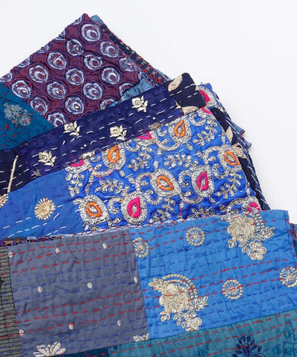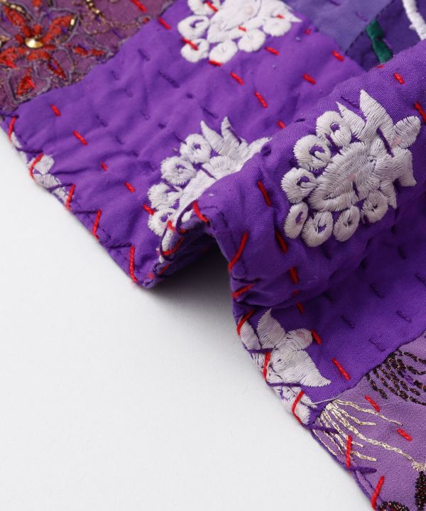 使い古したサリーなど、再利用するために数枚重ねて自由に刺した刺し子で、