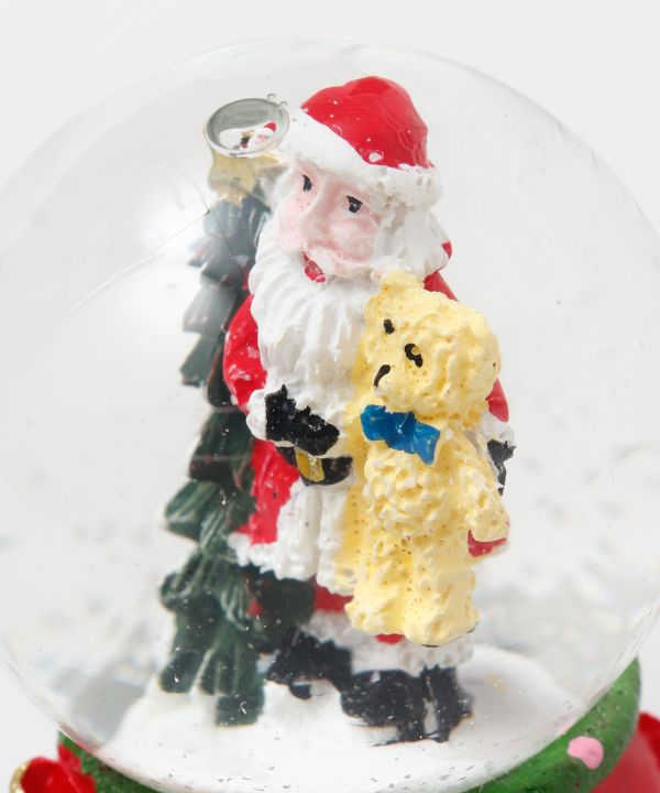 カラフルで温かみのあるにぎやかなクリスマスをイメージしたスノードーム。リボンがあしらわれた、プチギフトにもぴったりなデザインです。