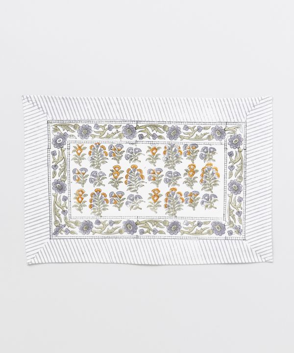 【インド直輸入】ブロックプリントのプレイスマット。厚手でしっかりとした生地感の綿素材。ランチョンマットとしてはもちろん、棚やテーブルのディスプレイとしてもおすすめです。手仕事ならではの風合いをぜひお楽しみください。※ブロックプリントの製品の特性上、色飛びやムラがある場合がございます。