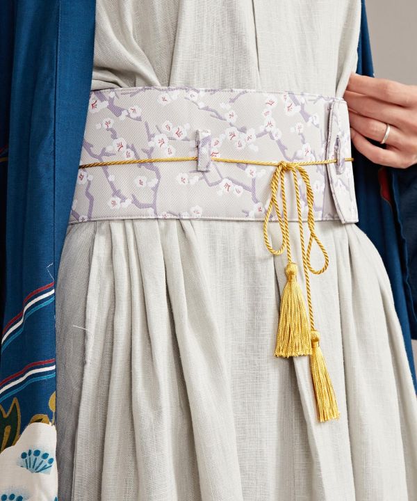 秋冬の花や木々を落とし込んだ「四季の山粧う」シリーズ。日本の四季を身近に感じられるデザイン。巻いて紐を結ぶだけの簡単帯ベルト。コーディネートのアクセントに帯を巻くことで簡単に和装の雰囲気を作れるアイテムです。※ナンテンの着用チャームは別売りです。