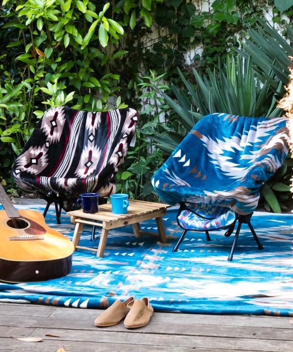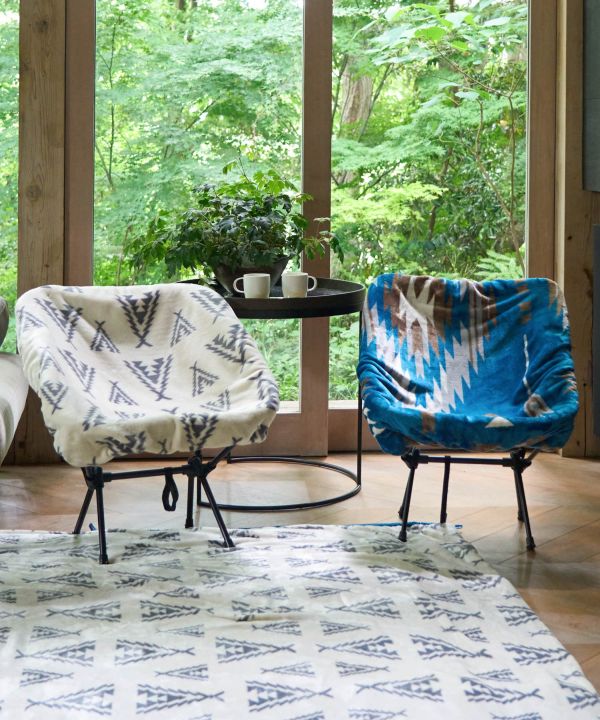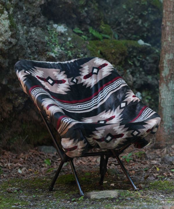 大自然の中、夜空を見上げよう。アウトドアチェアに被せるだけで、いつものチェアが大変身。着脱も簡単。暖かいブランケット生地のチェアカバーなので、通気性の良い素材で出来ている事の多いアウトドアチェアも、冬のキャンプで快適に使用できます。自然と調和するネイティブ柄のチェアに座り、星空を見上げよう。